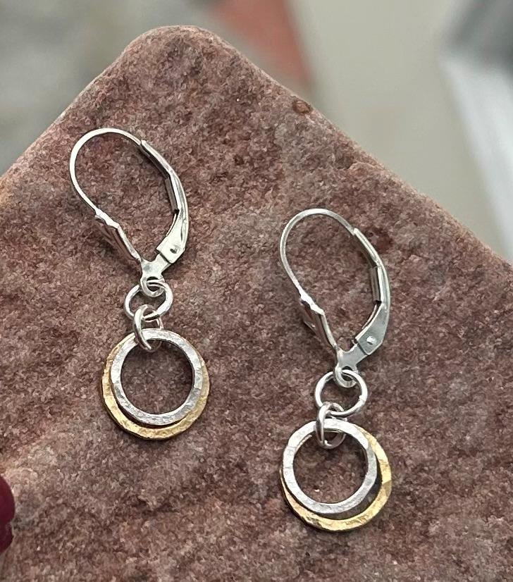 Hammered sterling silver/14k gold filled circle lever back earrings $30.00
